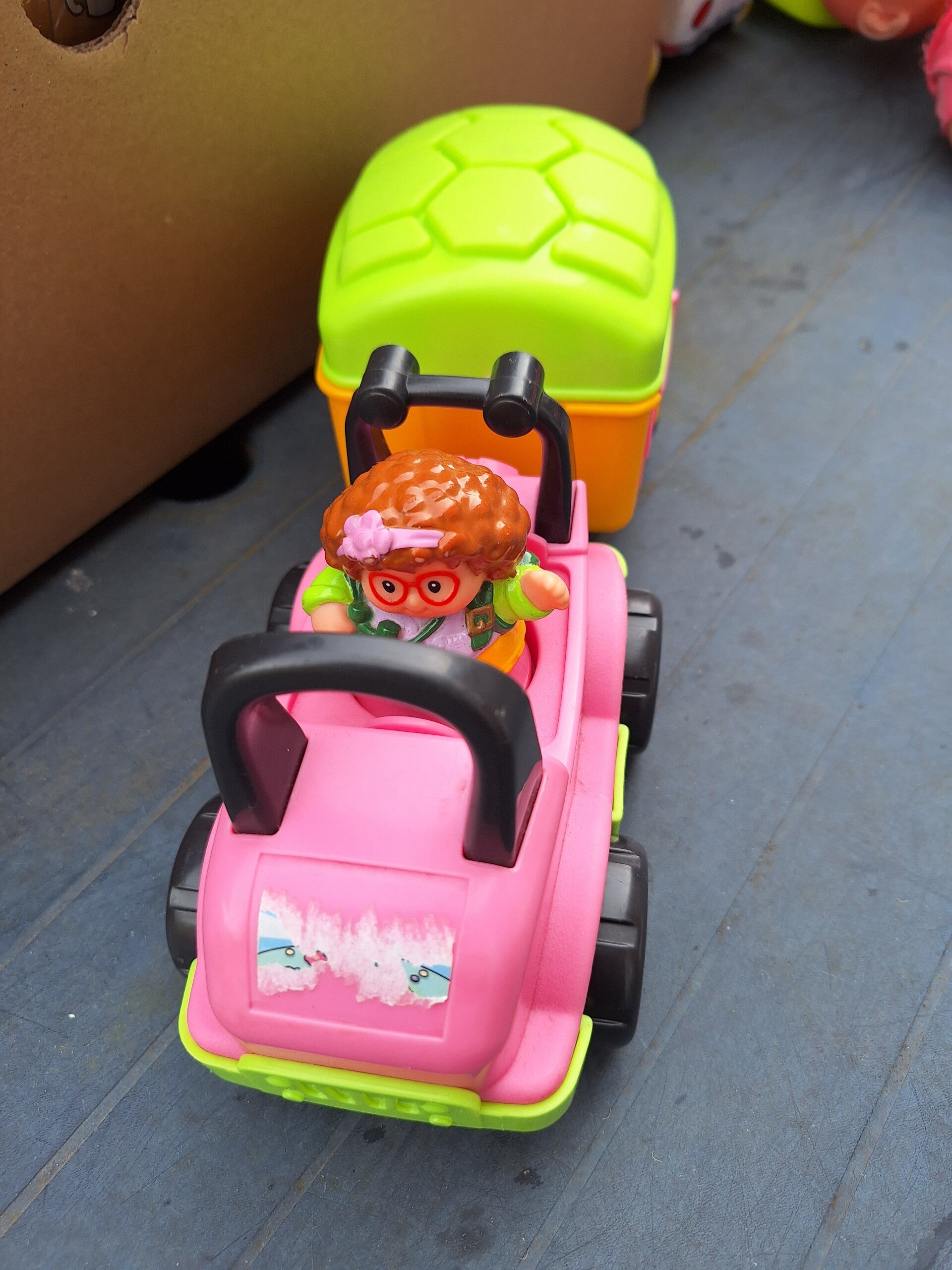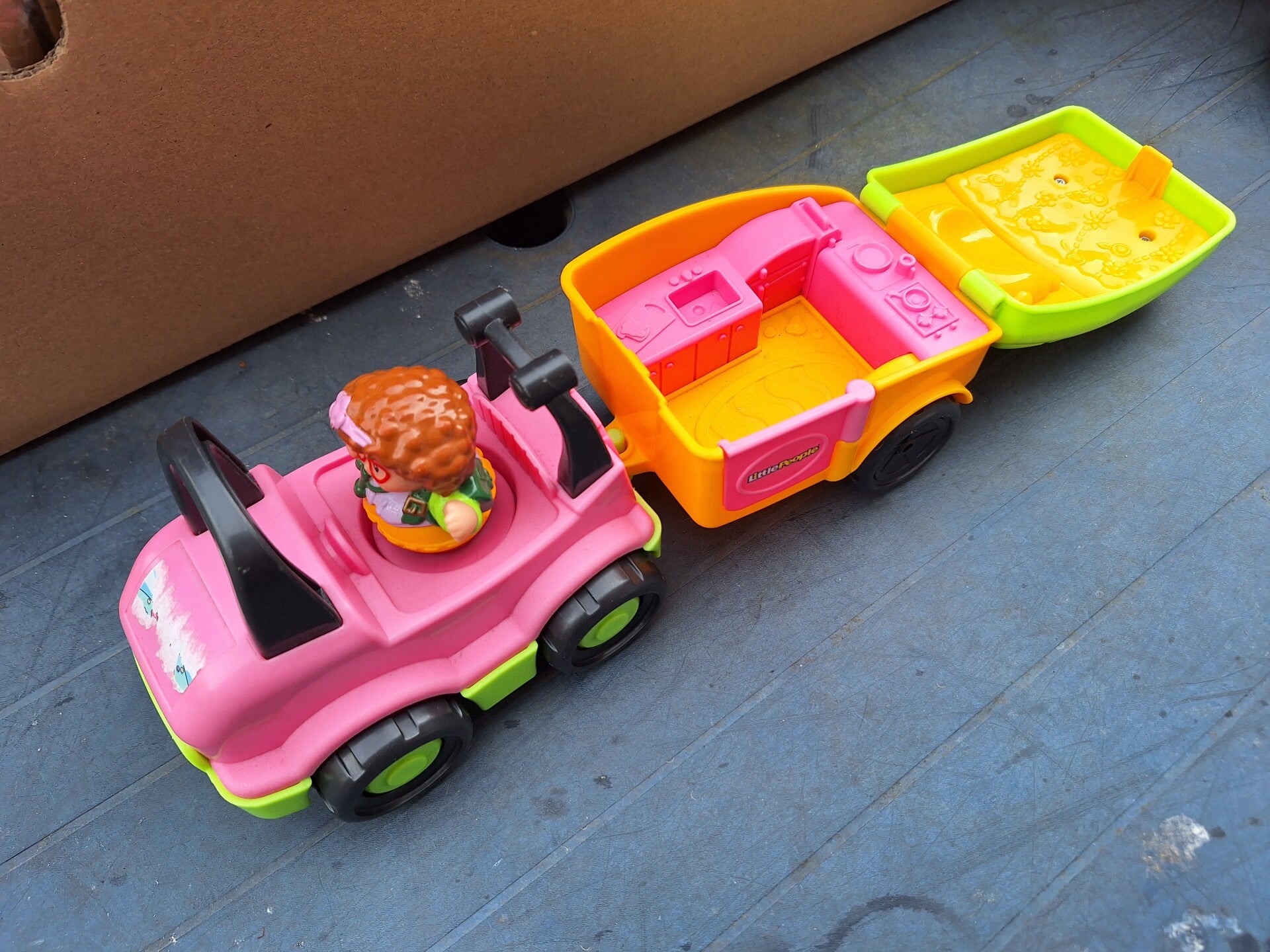 auto met caravan en poppetje